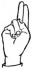На ћирилици написано СОЊА МЕЧАНИН састоји се из 11 слова [?]. Исписано ћириличном једноручном азбуком за глувонеме: